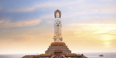 还有辑入世界吉尼斯大全的国宝 “金玉观世音”和世界上规模工艺精湛的室内三十三观音群像;体现中华古钟文化的梵钟苑;更有举世瞩目的伫立在南海之滨的108米高“南山海上观音”,“一体化三尊”,造型挺拔,气势恢宏,高越天下。这项被誉为“世纪级”的佛教造像工程历时六年,已于2005年4月24日(佛历三月十六)举行了举世瞩目、千载一时的盛大大典。 南山之美,南山之奇,已被越来越多的人们关注。在这里,人们既能领略热带滨海阳光、碧海、沙滩、鲜花、绿树的美景,更能获得佛教文化带来的心灵慰籍,体味回归自然、天人合一的乐趣。