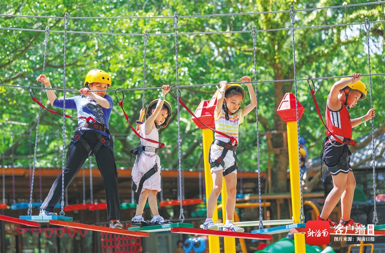 9月13日,游客在海口火山口公园内的亲子儿童乐园游玩。