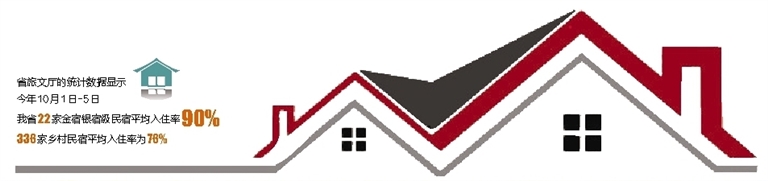 省旅文厅的统计数据显示,10月1日-5日,我省22家金宿银宿级民宿平均入住率90%,336家乡村民宿平均入住率为76%。