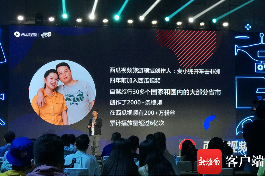 活动现场,短视频优质创作者“麦兜开车去非洲”进行创作分享。记者邓松摄