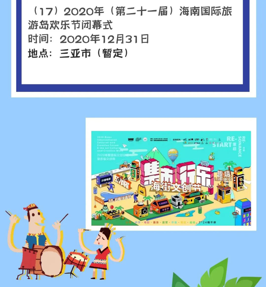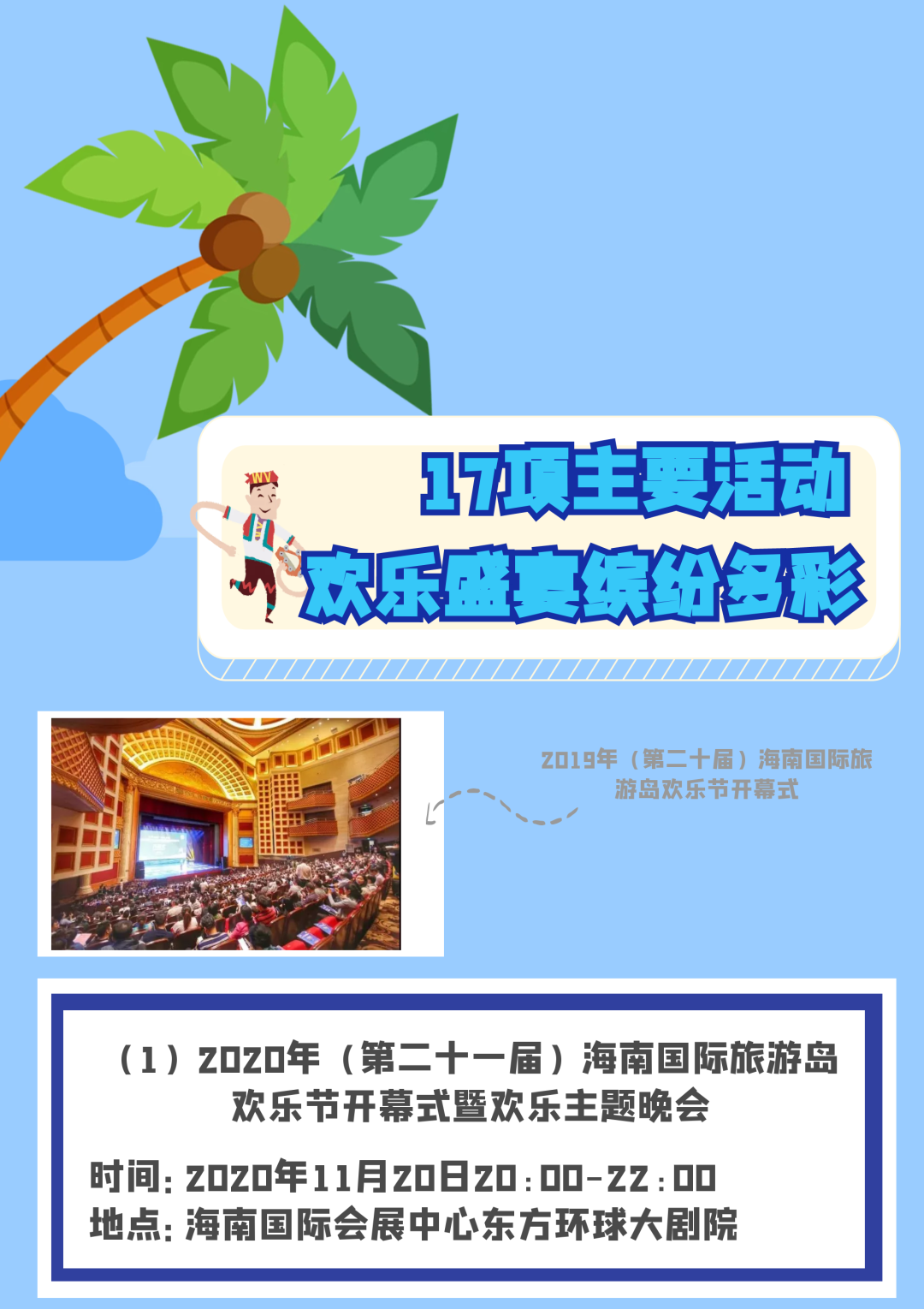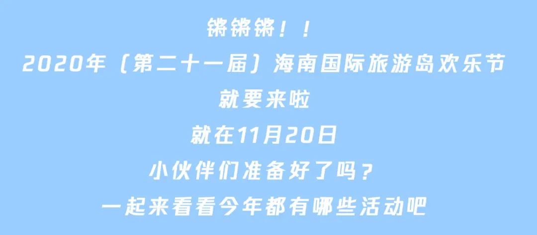 新海南客户端、南海网、南国都市报11月19日消息(记者钟圆圆)一年一度的海南国际旅游岛欢乐节来咯!11月20日,2020年海南国际旅游岛欢乐节将正式启幕。整个活动将持续至12月31日,来海南,带你畅玩一个月。