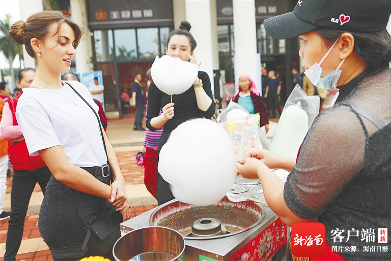 儋州特色旅游文化市集活动上,游客在购买美食。