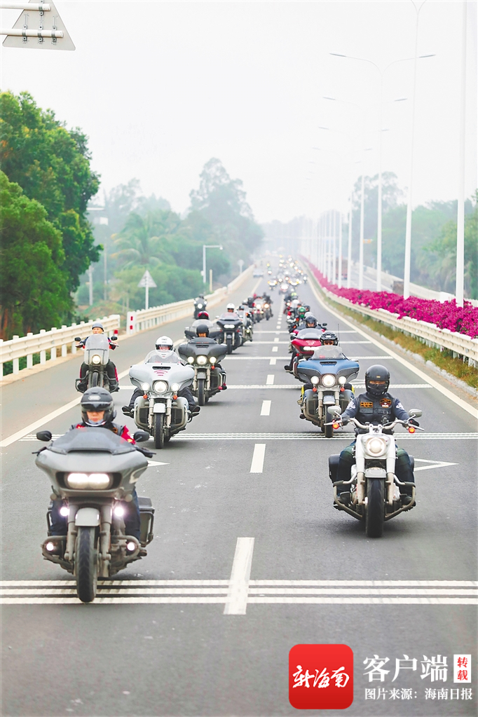 12月12日,百余名机车手在儋州参加“儋州有‘茄’,哈雷出行”活动。