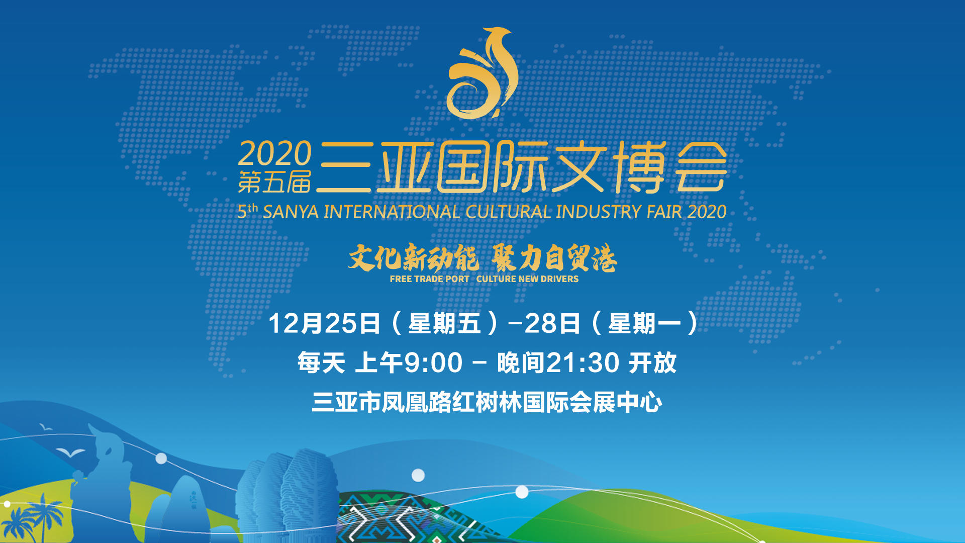 2020三亚国际文化产业博览交易会由中共海南省委宣传部、海南省旅游和文化广电体育厅、三亚市人民政府、海南省文学艺术界联合会、海南省贸促会指导,中共三亚市委宣传部、三亚市旅游和文化广电体育局、三亚市商务局、三亚市文化产业协会主办。