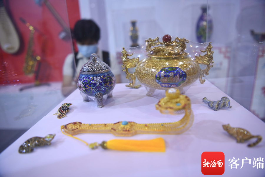 花丝镶嵌技艺做成的壶、如意和香炉。记者 沙晓峰 摄