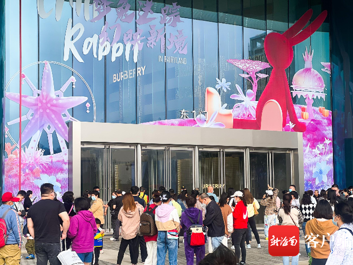 游客打卡海口国际免税城。海口国际免税城供图