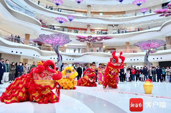 游客在海口国际免税城观看舞狮迎春表演。海口国际免税城供图
