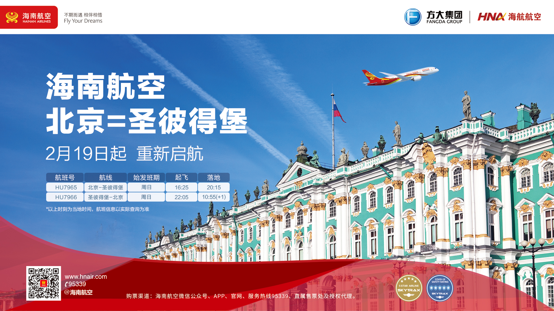 海南航空2月19日起复航北京—圣彼得堡国际航线海报。海南航空供图