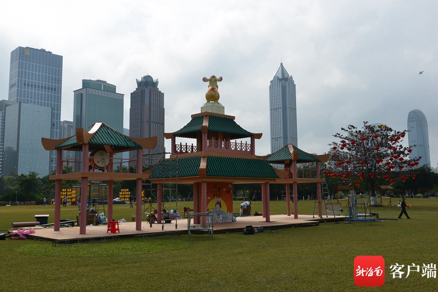 2月2日,万绿园,一个小舞台已经搭建好。记者 陈卫东摄