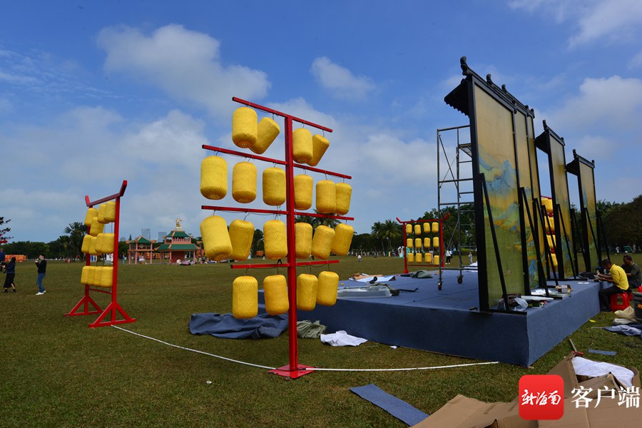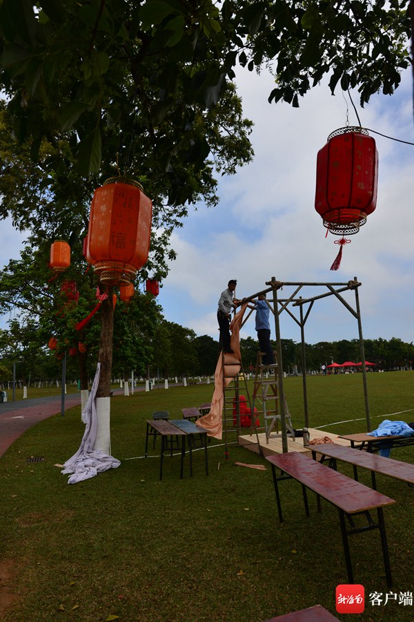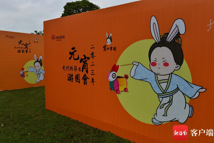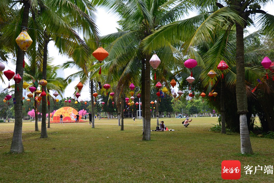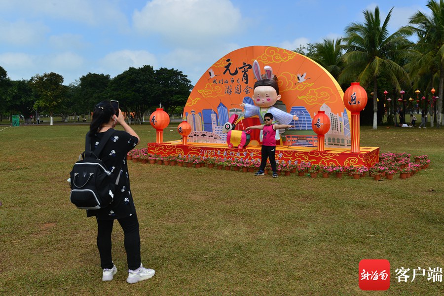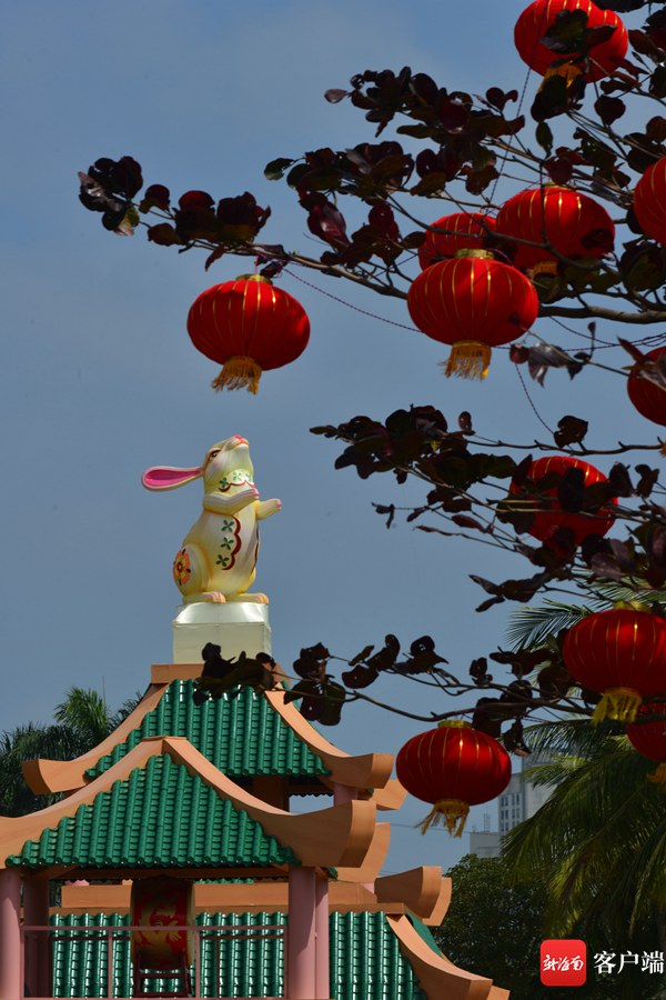 新海南客户端、南海网、南国都市报2月2日消息 (记者 陈卫东)元宵节即将到来,一场盛大的赏花灯会正在海口万绿园紧锣密鼓的布置中,几株十分逼真的种好,各种花灯也陆续挂上枝头,一只玉兔也安放在活动中心的建筑顶端。