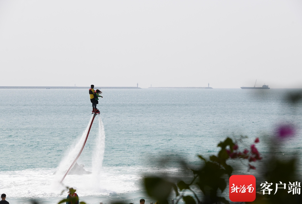 2月26日,游客在三亚大东海景区体验海上娱乐项目。记者沙晓峰摄