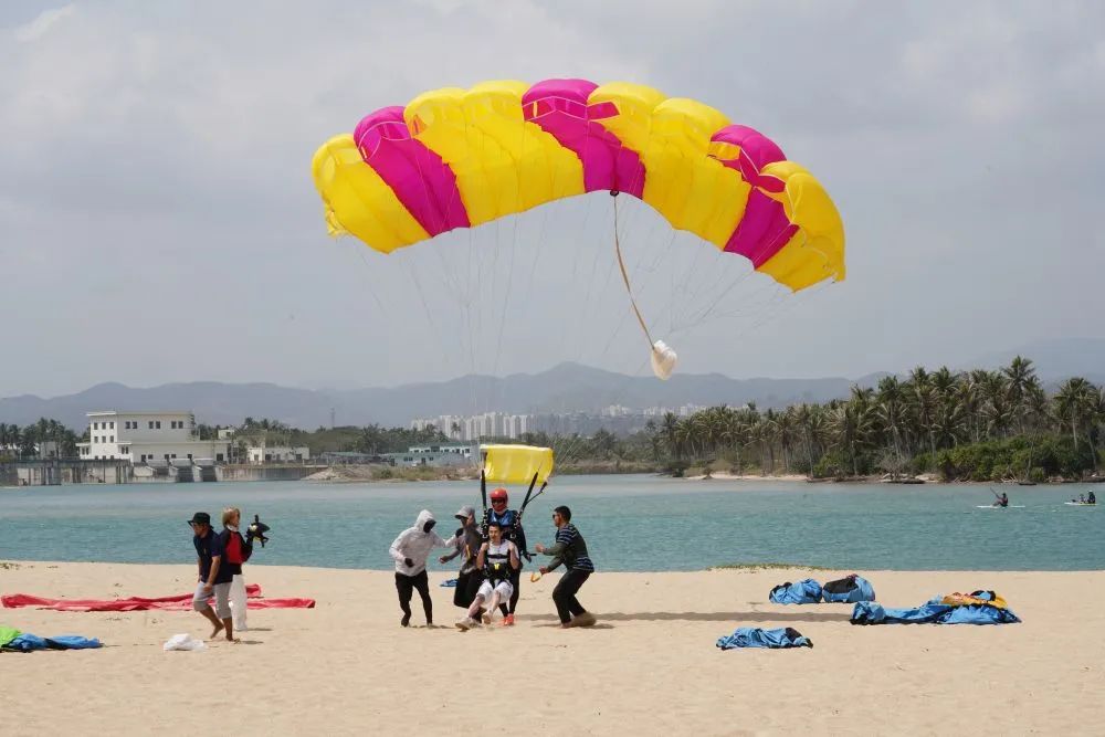 3月14日,游客在三亚海棠湾体验跳伞运动。新华社记者 樊雨晴 摄(资料图)