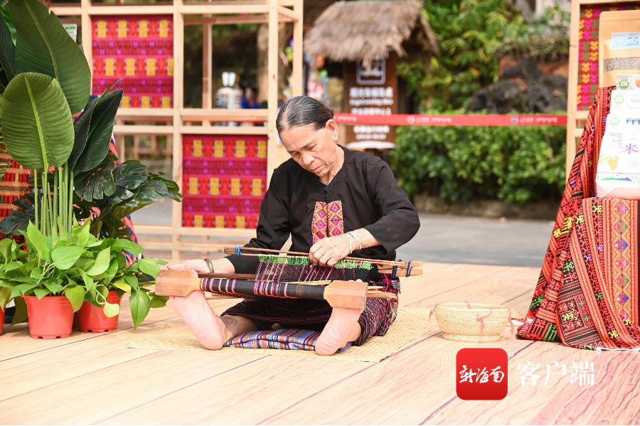 保亭黎族阿婆现场展示织黎锦。海南省旅文厅供图