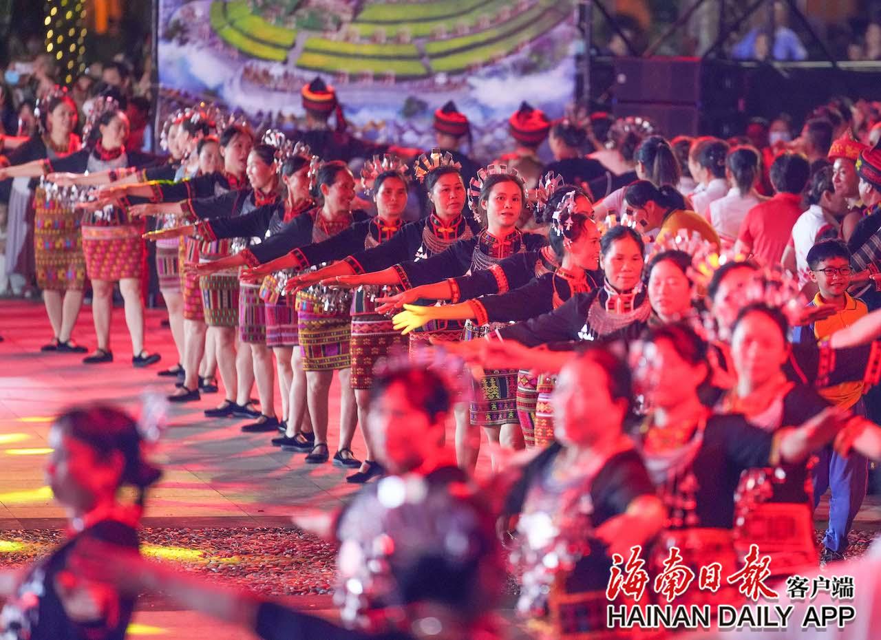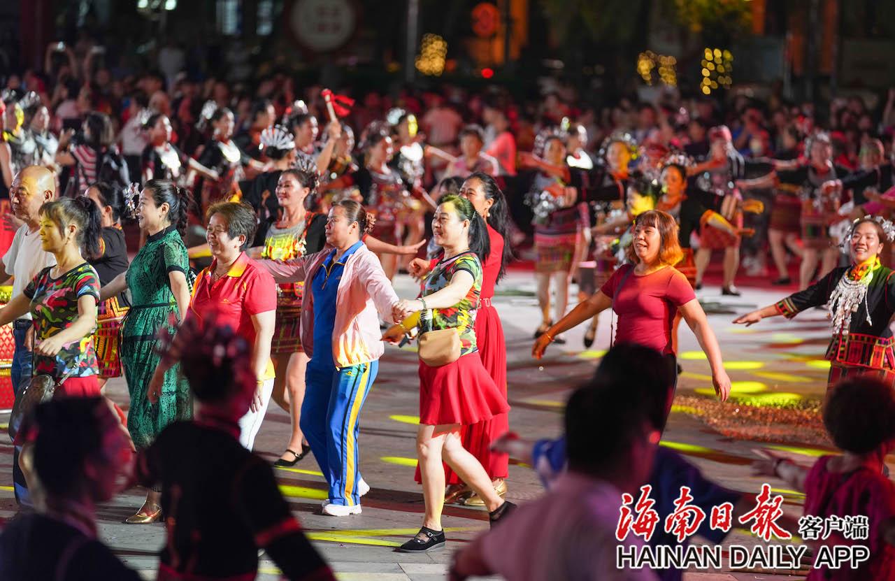 4月17日,五指山市通什镇三月三广场的千人共同舞现场热闹非凡。海南日报记者 李天平 摄