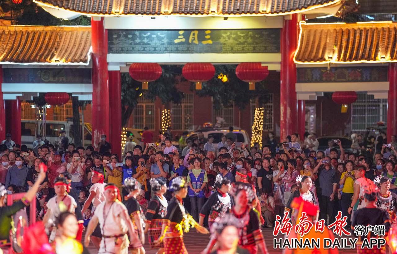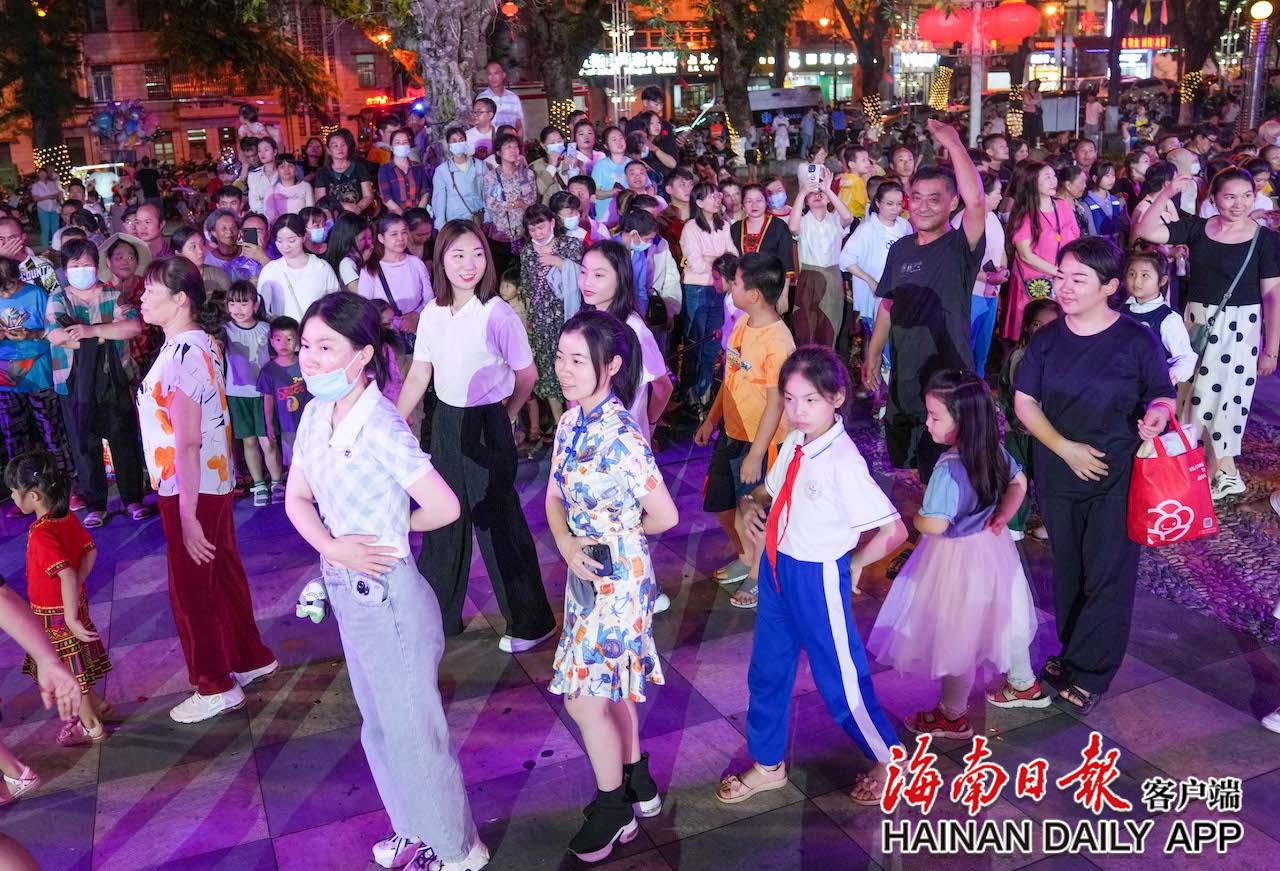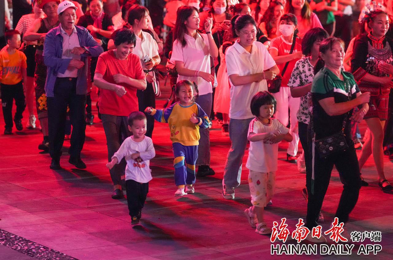 4月17日,在五指山市通什镇的三月三广场,市民游客参与到共同舞中。海南日报记者 李天平 摄
