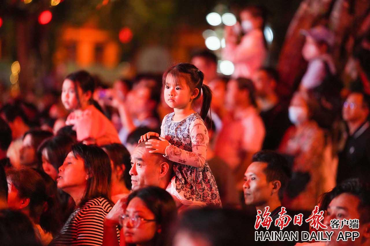 4月17日,在五指山市通什镇三月三广场,小朋友观看千人共同舞。海南日报记者 李天平 摄