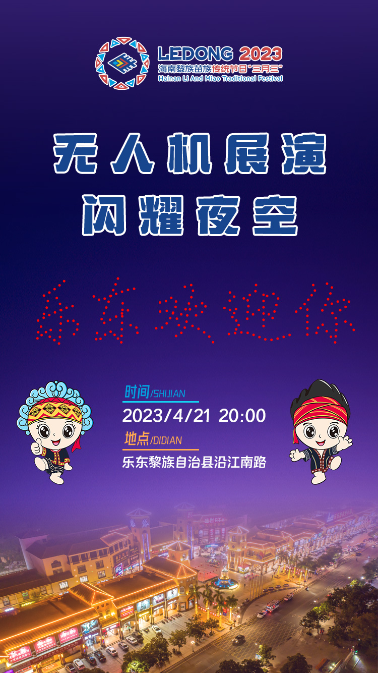 此次无人机展演由新海南客户端、南海网、南国都市报合作伙伴一飞(海南)科技有限公司策划设计,展演时间为4月21日晚8点,地点为乐东沿江南路。届时,新海南客户端、南海网、南国都市报也将对此次展演进行现场直播,敬请关注。