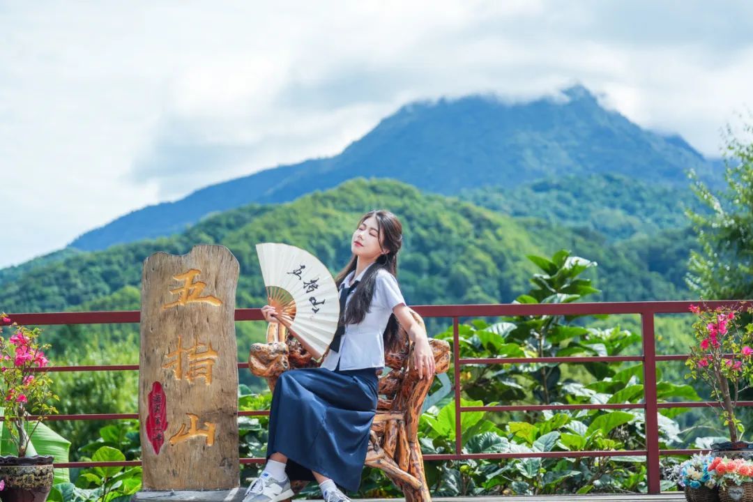 想看海南最高峰五指山的全貌,那就去水满河热带雨林风景区,登观山平台,与五指山合影。
