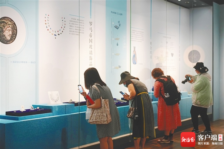 4月20日,观众在海南省博物馆观看“瑠光异彩——丝路上的古玻璃器艺术展”。海南日报记者 张茂 摄