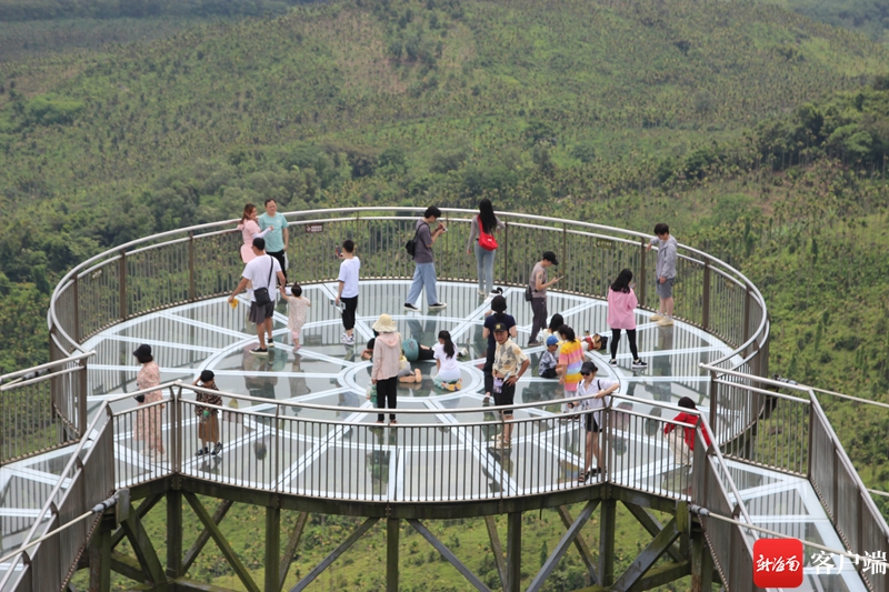 “五一”假期游客在白石岭旅游区玻璃栈道游玩。记者 苏桂除摄