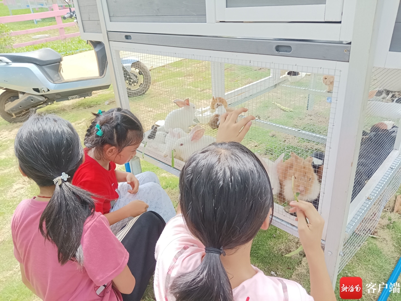 小朋友在热带水果基地水果萌宠森林观看小动物。记者苏桂除摄
