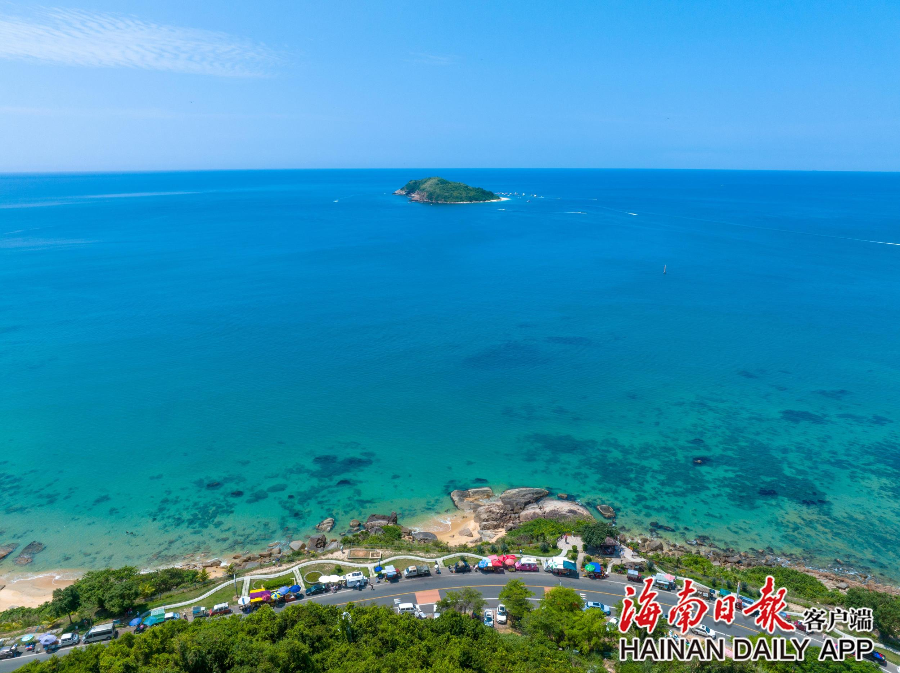 4月30日,不少游客趁着“五一”假期自驾来到万宁石梅湾旅游公路,感受滨海旅游公路的魅力。万里晴空下,石梅湾的海水清澈见底。抬眼望去,海水蓝出层次感,让游客赏心悦目。据悉,万宁石梅湾至大花角最美旅游公路全长35.24公里,全线串联了石梅湾、南燕湾、神州半岛等多个美丽海湾。