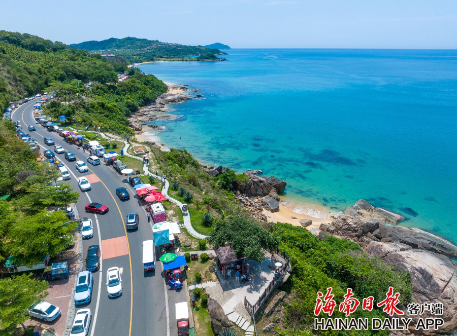 4月30日,不少游客趁着“五一”假期自驾来到万宁石梅湾旅游公路。
