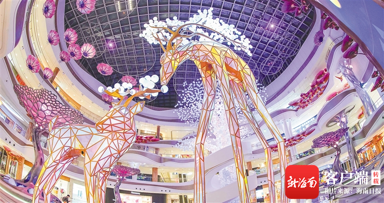 雾气弥漫的神秘山巅、月光铺洒的岩石海岸、灵蝶起舞的水上森林、神鹿驰骋的繁花山谷……走进海口国际免税城一楼的天际秘林主题中庭,你会立即被建设者结合海南地域特点营造出的沉浸式购物空间吸引,瞬间体会到时尚感。