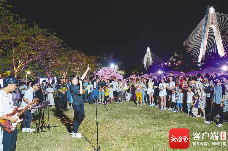 市民在海口世纪大桥下看演出。海南日报记者 封烁 摄