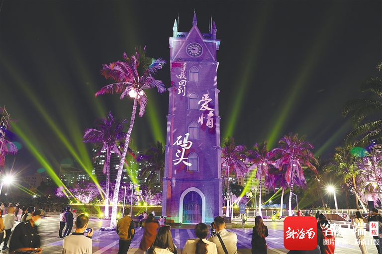 海口钟楼灯光秀。海南日报记者 李天平 摄