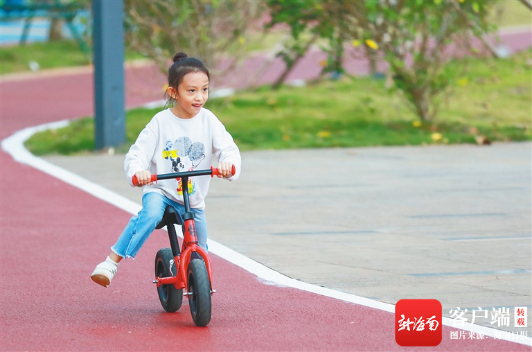 一位小朋友在海口湾一带骑行。海南日报记者 李天平 摄