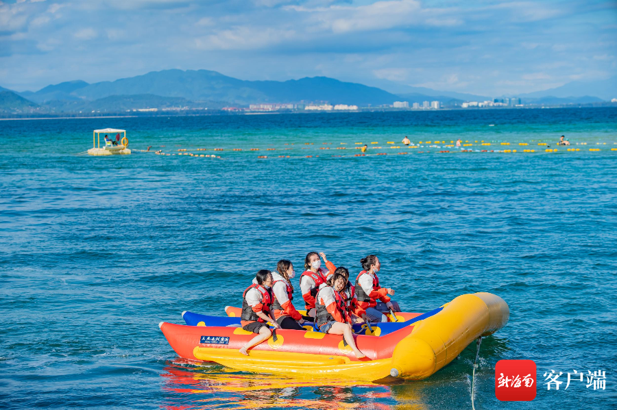 游客在蜈支洲岛体验水上项目。景区供图