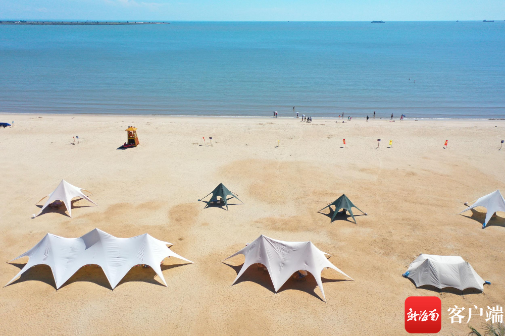 假日海滩为洗龙水的市民准备的帐篷。记者 汪承贤 摄