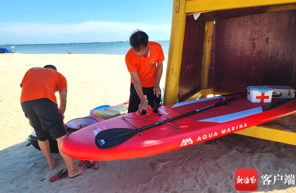 假日海滩准备的海上巡逻用的船板。记者 汪承贤 摄