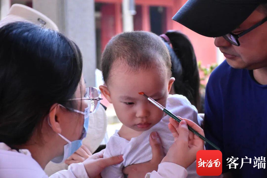 记者看到,文昌孔庙游人如织,游客们在这里游览参观,并实地体验包香囊、点雄黄,以独特的方式祈求端午安康。不少游客通过用艾叶蘸取古井水的方式“洗龙水”,祈福这一年顺顺利利。活动现场设置了汉服游园打卡,还有灰雕体验、椰雕体验等。