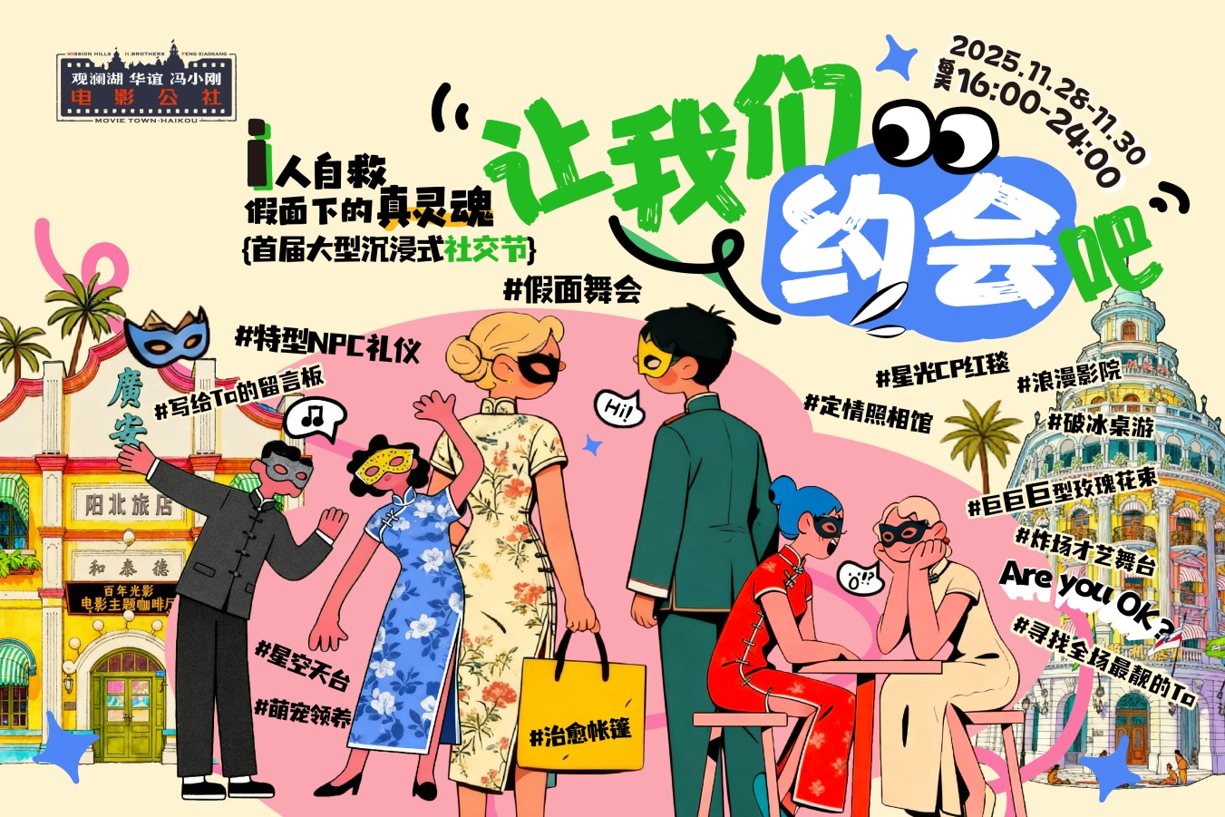电影公社首届“让我们约会吧!”大型沉浸式社交节活动海报。海口观澜湖电影公社供图