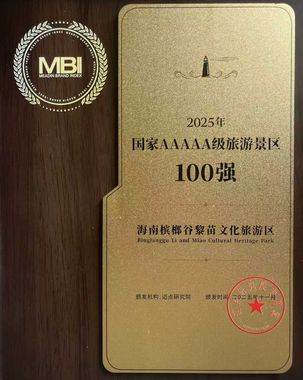 南海网、新海南客户端11月26日消息(记者 胡丽齐 通讯员 潘达强)近日,“2025迈点文旅节·第五届迈点文旅景区运营盛典”在杭州举行。海南槟榔谷黎苗文化旅游区凭借浓郁的民族文化特色与强大的品牌推广力,荣膺“2025年国家AAAAA级旅游景区100强”殊荣。