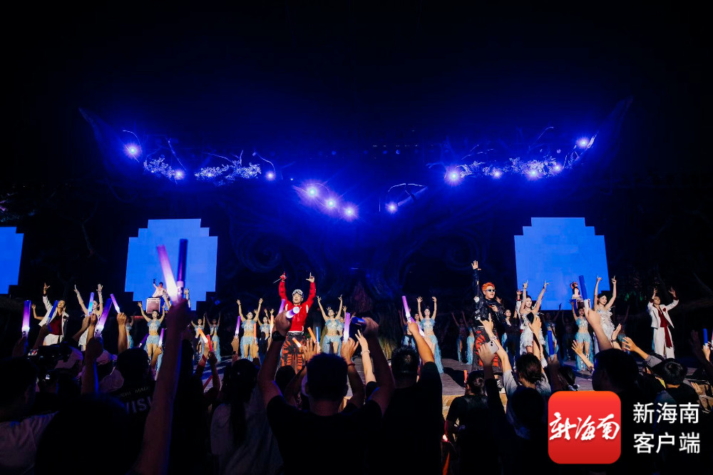 170余名原创NPC全程陪伴互动,从苏轼、冼夫人等先贤角色的谜题问答,到黎族先民织锦技艺展示,游客可在趣味互动中赢取“银票”,参与《亿万富翁实景游戏》角逐豪礼。镇场大秀《火吻海之灵鹿》以震撼舞美重构鹿回头传说,结合海风与光影特效,带来沉浸式视听冲击;落日海风大合唱、全园NPC巡游等五大“沸点时刻”轮番上演,让夜游全程充满惊喜。