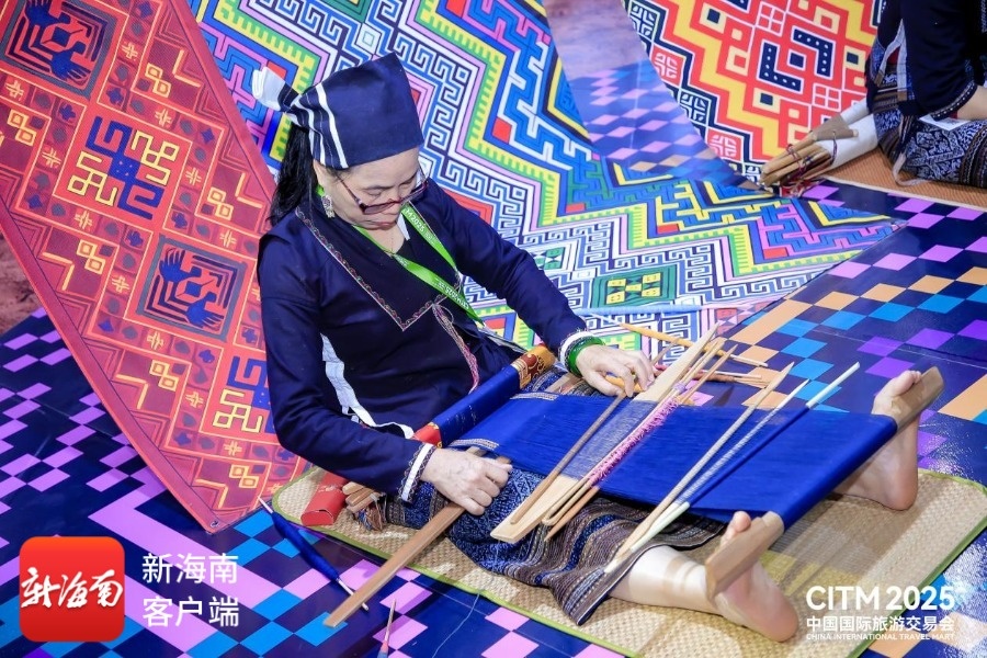 阳光海南展区内的黎锦技艺展示。旅交会组委会供图