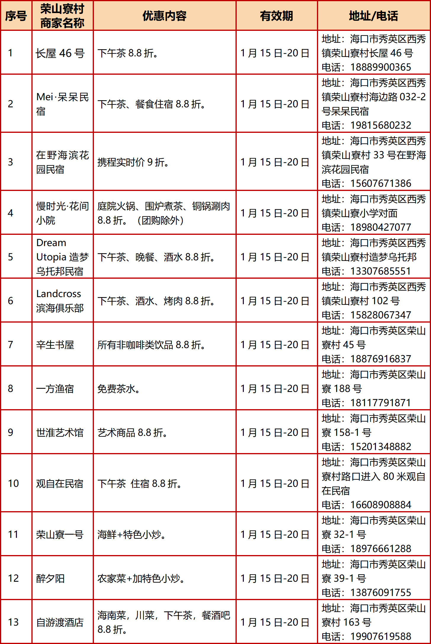 荣山寮部分商家推出的优惠活动。秀英区供图