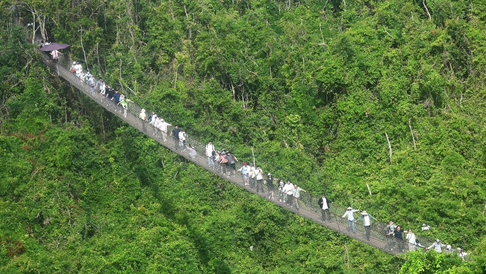 在万宁日月湾,每天都有大批年轻人前来体验冲浪,沙滩上、浪涛里满是活力满满的身影;在海南热带雨林国家公园,不少家庭带着孩子前来探秘雨林,在自然中感受别样年味。