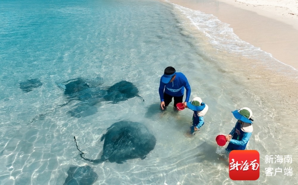 游客在三亚蜈支洲岛体验魔鬼鱼互动项目。三亚蜈支洲岛供图